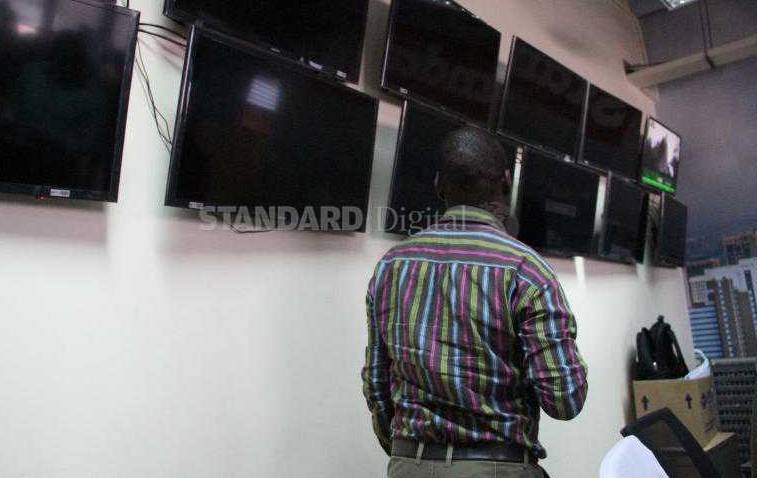 A man stares at TV sets pinned on a wall during the media shutdown in March 2018. [File, Standard]