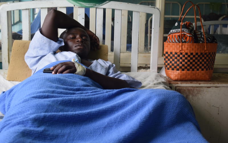 Almada Onyango at Homa Bay County Referral Hospital where he was admitted after he was allegedly assaulted by police officers in Ndhiwa. [James Omoro, Standard].