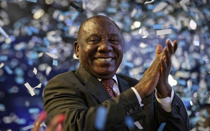 African National Congress’ Cyril Ramaphosa (C) greets a voter as he arrives to cast his vote for the general elections at the Hitekani Primary School, Chiawelo, Soweto, on May 8, 2019. His party won re-election. [AFP]