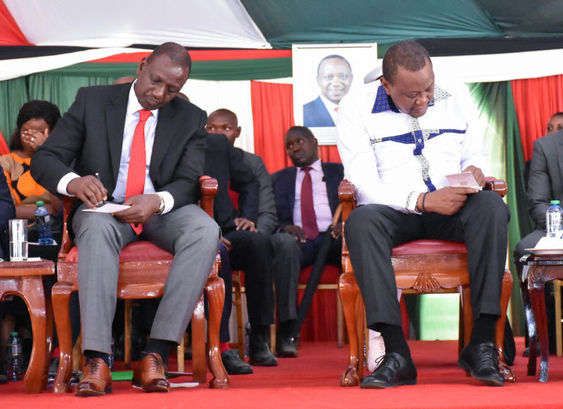 President Uhuru Kenyatta and his deputy William Ruto during the inauguration of Rivatex factory in Eldoret early this month. (File, Standard)