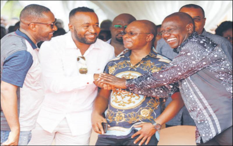 DP William Ruto with Msabweni MP Suleiman Dori, Mombasa Governor Hassan Joho and his Kilifi counterpart Amason Kingi in Rabai, Kilifi County. [File, Standard]