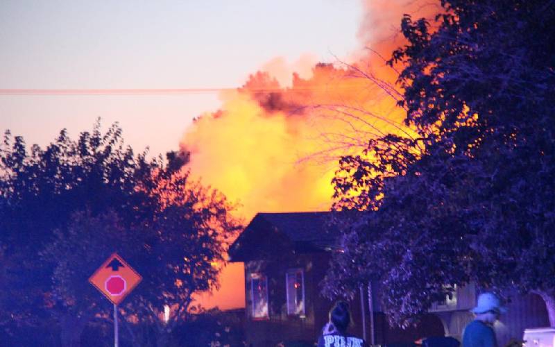 A house burns after an earthquake in Ridgecrest, California, US July 5, 2019. [Reuters]
