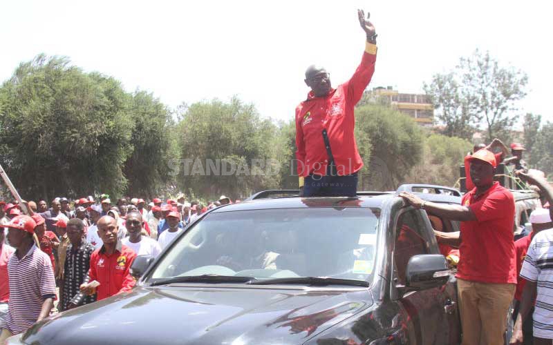 Karanja Kabage (waving) when he contested the Nakuru senatorial seat in 2017. [File, Standard]