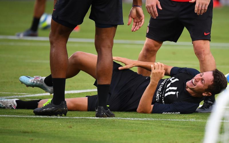 Paris Saint-Germain's Spanish midfielder Ander Herrera reacts with teammates during a training session at The Xixiang Sports Centre in Shenzhen on August 1, 2019, ahead of the French Trophy of Champions football match between Rennes and Paris Saint-Germain. [AFP]