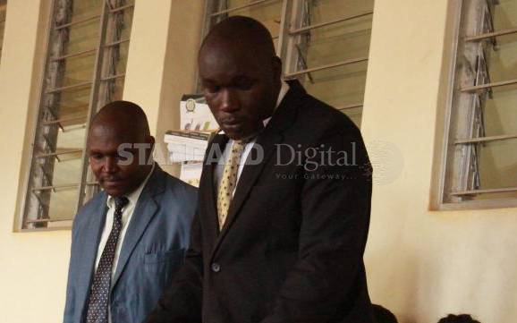 The county government of Busia enforcement officers Vincent Ngala (left) together with his colleague John Odongo (right) in the dock on August 8th 2019 after they were found guilty of assaulting journalists in 2015.[Ignatius Odanga/Standard]