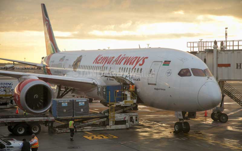The Kenya Airways’ Boeing 787 Dreamliner at the JFK International Airport after its maiden non-stop flight to New York, USA. [File, Standard]