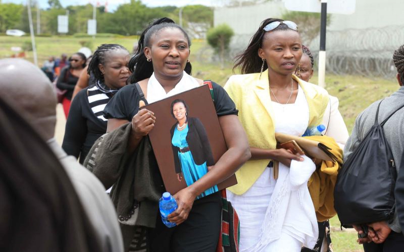 Family members of Jane Njeri, who was among the 32 Kenyans who died in the March 10 Ethiopian Airlines crash at the Jomo Kenyatta International Airport yesterday. [Stafford Ondego, Standard]