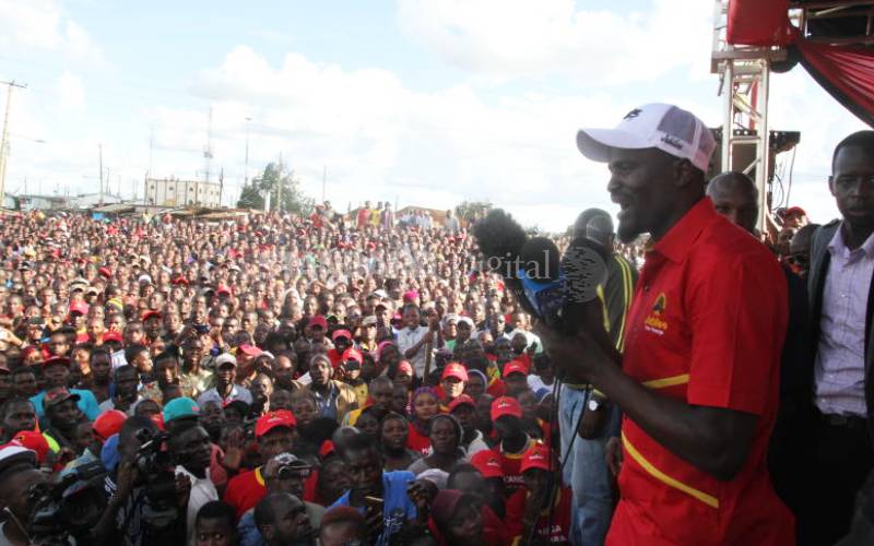 McDonald Mariga, eyeing the parliamentary seat, at a rally in Kibra.