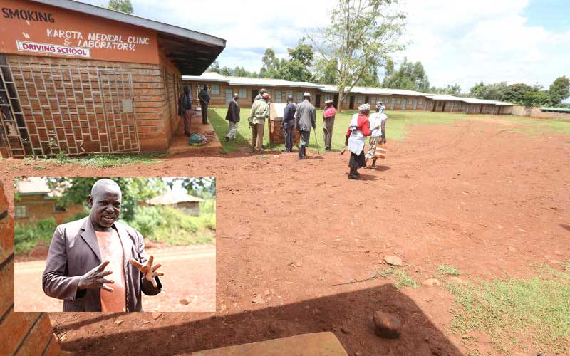 The abandoned Nyambambo market on the border of Nyamira and Homa Bay counties. INSET: Michael Saoke, a tax collector in the market for over 40 years. [Sammy Omingo, Standard]