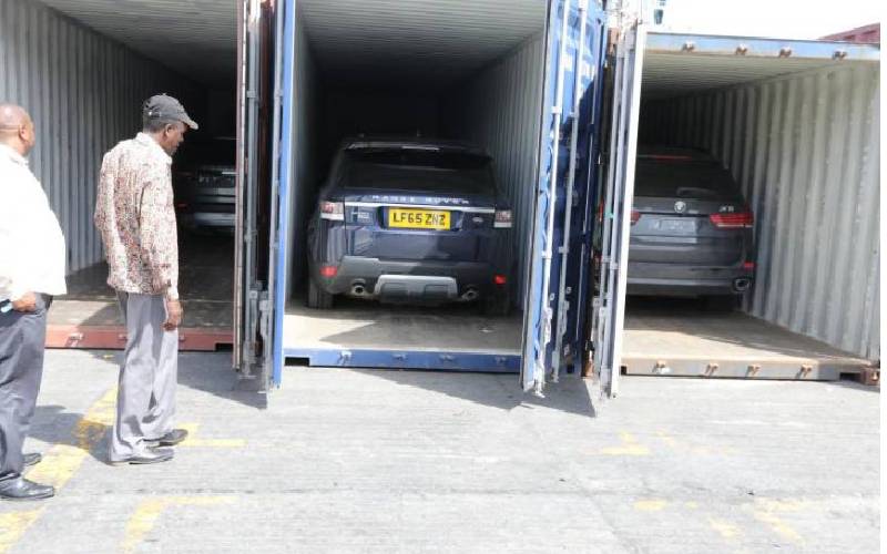 One of the high-value cars stolen from the UK at the Port of Mombasa last year. Other high-end cars and motorbikes stolen from the UK were seized today at the port. [File, Standard]