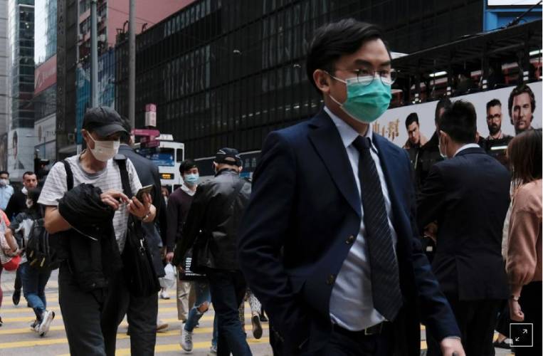 People wear protective face masks as they take their lunch breaks at the financial Central district, following the outbreak of the new coronavirus, in Hong Kong, China [Reuters]