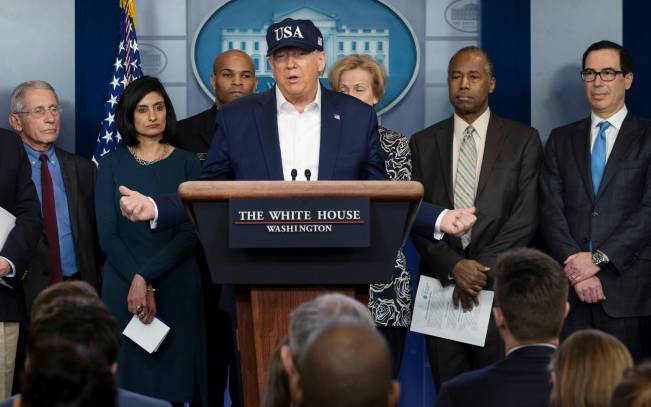 US President Donald Trump (C, pictured with members of the Coronavirus Task Force at the White House) reportedly is trying to poach German scientists working on an experimental vaccine against the virus. [Image: AFP]