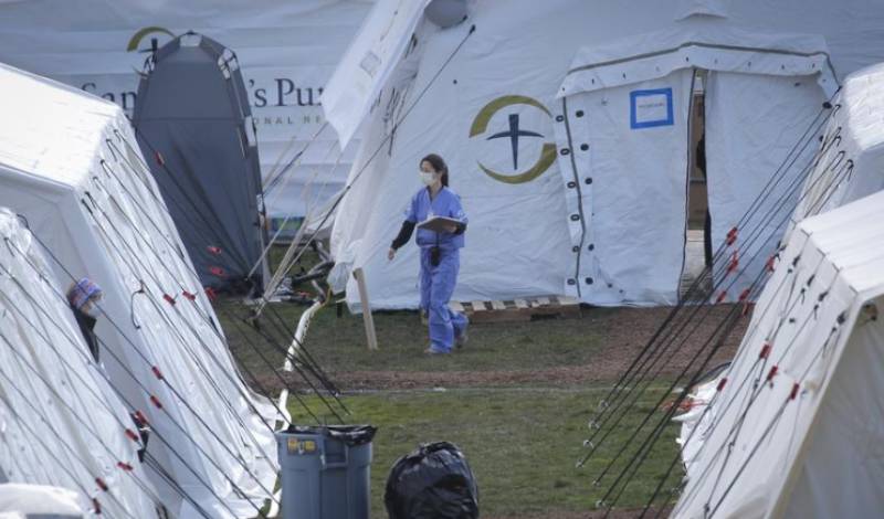 A healthcare worker walks outside a newly constructed field hospital in the East Meadow of Central Park during the outbreak of the coronavirus disease (COVID-19) in the Manhattan borough of New York City, New York, U.S., April 1, 2020. (Reuters)