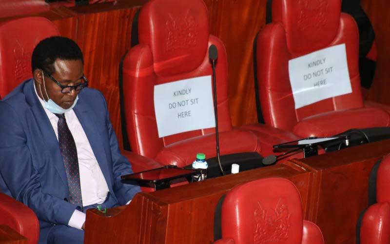 Machakos Senator Boniface Kabaka during Senate Special Sitting on COVID-19 at Parliament on Tuesday, March 31. [Boniface Okendo, Standard]