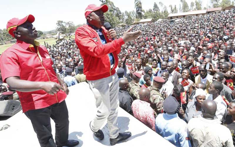 President Uhuru Kenyatta with his deputy William Ruto During a campaign rally at Sameta, Kisii County on October 5, 2017. [File, Standard]