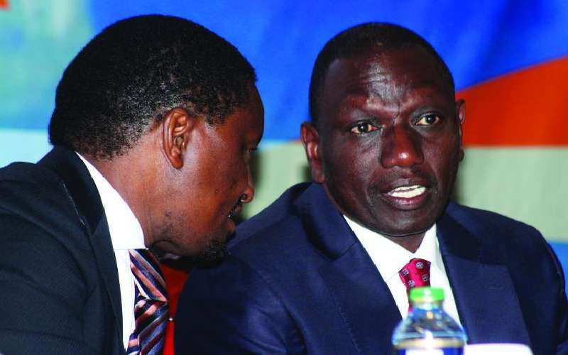 Deputy President William Ruto together with his ally and former Agriculture Cabinet Secretary Mwangi Kiunjuri at a past event in Nairobi. [File, Standard]
