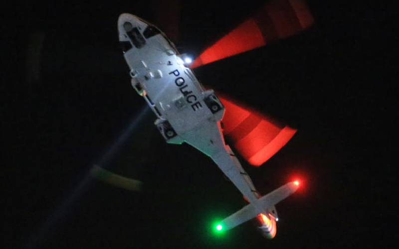 A police chopper in Eastleigh, Nairobi, on May 11, 2020, after the government ordered the cessation of movement in the area to slow down the spread of coronavirus. [Stafford Ondego, Standard]