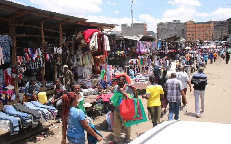 Traders and hawkers at Gikomba Market continue with their daily business with few buyers due to the government’s directives against Covid-19. [David Gichuru, Standard]