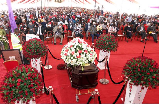 At the funeral attended by ODM leader Raila Odinga and his Wiper counterpart Kalonzo Musyoka in Mutitu, Kitui County, Nzamba was celebrated for his conciliatory approach to law making, commitment to law and love for his country.