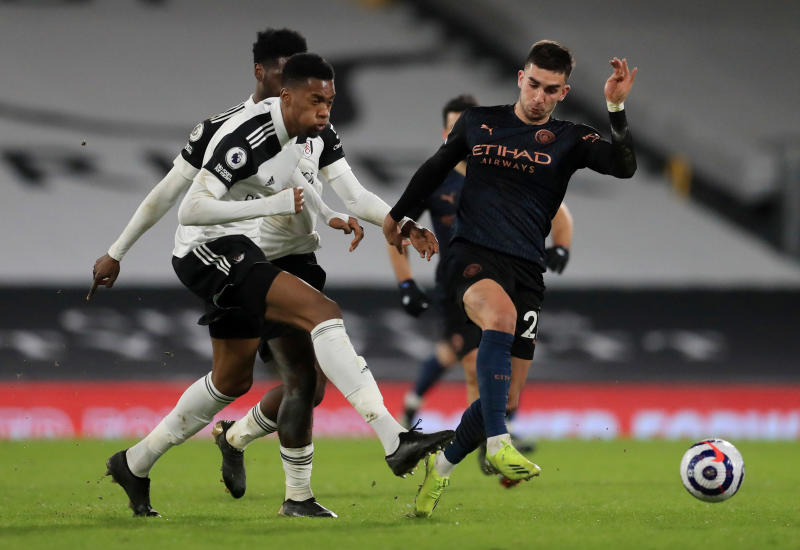 March 13, 2021 Fulham's Tosin Adarabioyo in action with Manchester City's Ferran Torres Pool [REUTERS]