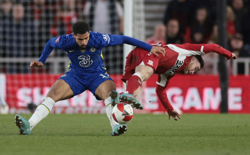 March 19, 2022 Chelsea's Ruben Loftus-Cheek in action with Middlesbrough's Aaron Connolly Action Images via Reuters