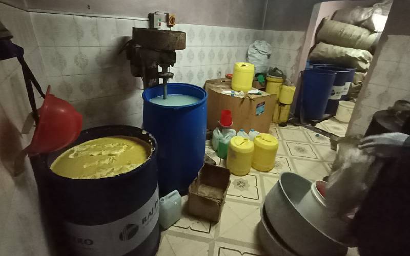 The woman's two bedsitters had been converted into a factory with mortars, drums, cookers and assorted chemicals. [Kennedy Gachuhi]