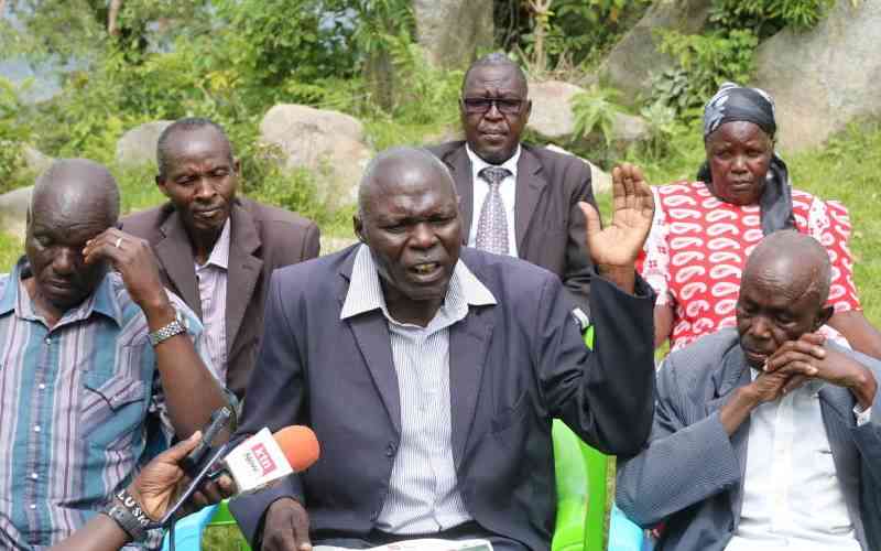 Terik community led by their Chairman John Bor during an interview at Jeblebuk primary school in Vihiga county on July 6, 2022. [Benjamin Sakwa, Standard]