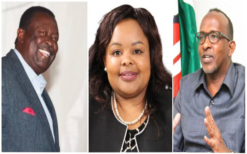 From left: Musalia Mudavadi (Prime CS nominee), Mercy Wanjau (nominee, Secretary to the Cabinet) and Aden Duale (Defence CS nominee). [File, Standard]