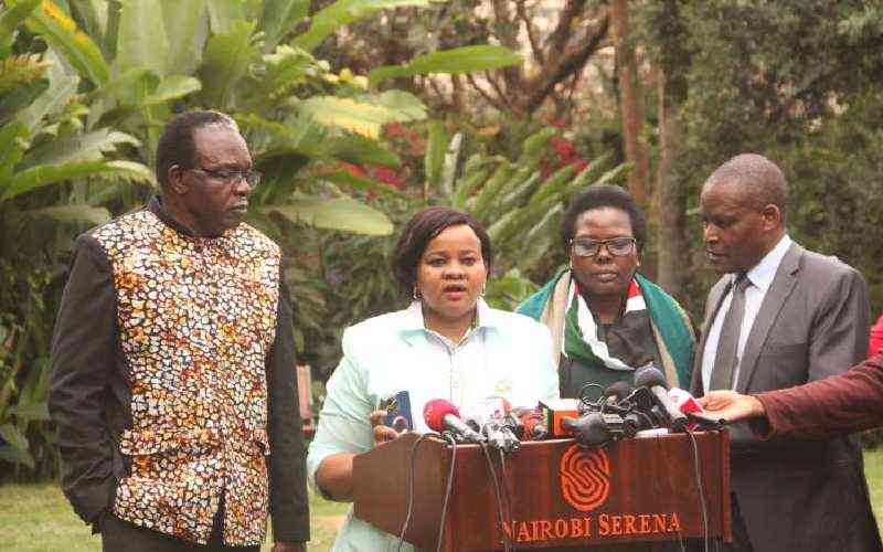 Four IEBC Commissioners address members of the press on August 15, 2022 at Serena Hotel. [Edward Kiplimo, Standard]