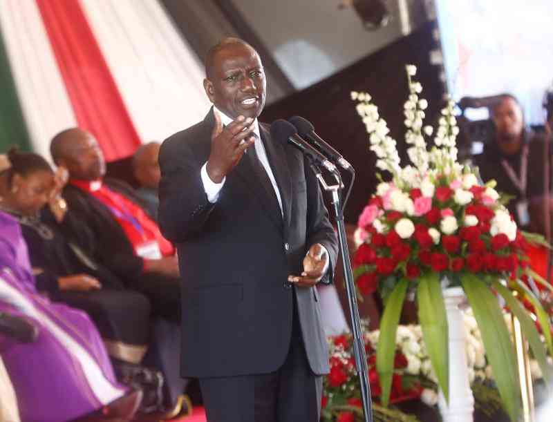 President William Ruto at the burial of Mukami Kimathi in Njabini, Nyandarua County. [Standard]