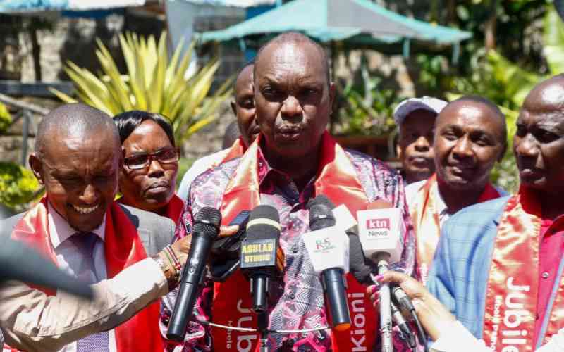 Jubilee Secretary-General Jeremiah Kioni addressing the press in Nakuru on December 8, 2023. [Kipsang Joseph, Standard]