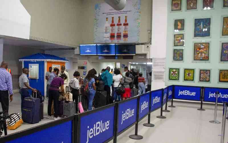 People wait in line for a flight at Toussaint Louverture Airport in Port-au-Prince on May 20, 2024. [AFP]