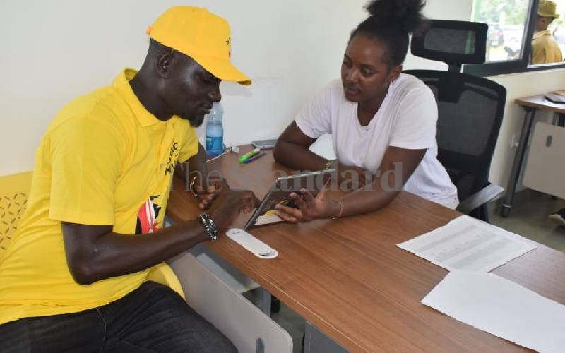 Acting UDA deputy coordinator in Homa Bay County Kennedy Ongati voting during the UDA Homa Bay County elections at the UDA headquarters in Homa Bay town. UDA party concluded its grass root elections in Home Bay County on Monday as one of the strategies for battling ODM party in its stronghold. [James Omoro, Standard]