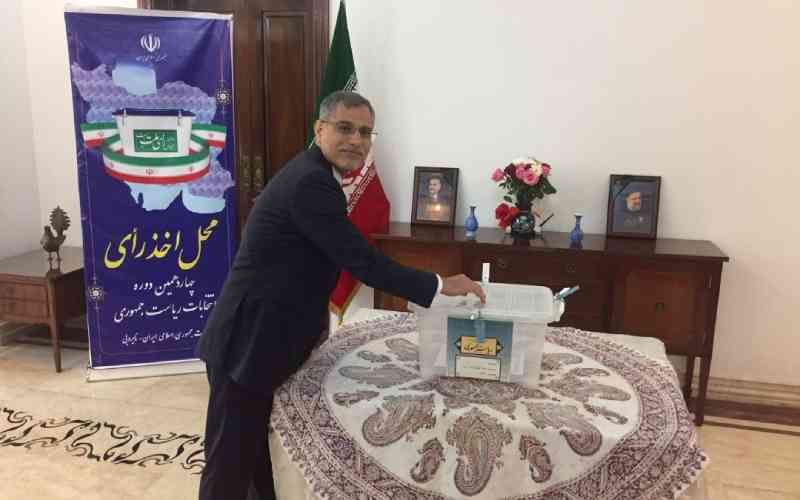 Ambassador of Iran Dr.Ali Gholampour casting his vote at the Embassy of Iran. [File, Courtesy]