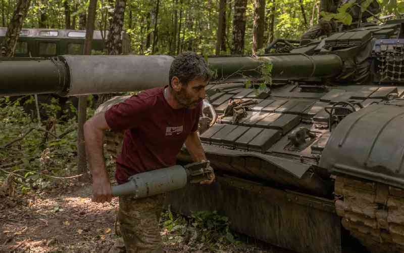 A Ukrainian serviceman unloads shells from a Soviet-made T-72 tank, in the Sumy region, near the border with Russia, on August 12, 2024. [AFP]