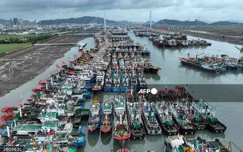 Fishing boats shelter in the port in Zhoushan, China's easter Zhejiang province ahead of the arrival of Typhoon Bebinca. [ AFP]