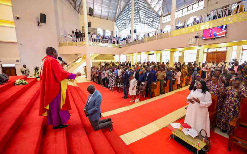 When Deputy President Rigathi Gachagua was prayed for during a chruch service at MCK All Saints, Kinoru, Meru County. [DPCS]