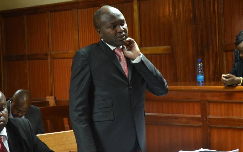 Lawyer Donald Kipkorir represents a client at the Milimani Law Courts in Nairobi. [File, Standard]