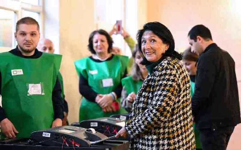 Georgian President Salome Zurabishvili votes in the country's parliamentary elections at a polling station in Tbilisi on October 26, 2024. [AFP]