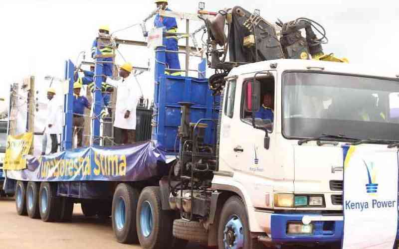 Kenya Power employees in a mobile workstation at Uhuru Gardens during Labor Day celebrations.[File, Standard]