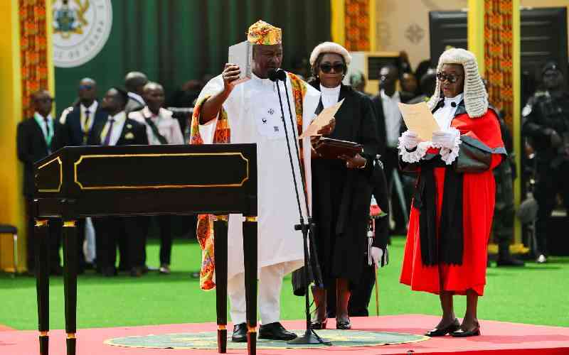 Ghana's President John Mahama takes oath of office at his inauguration at the Independence Square in Accra on January 7, 2025. [AFP]
