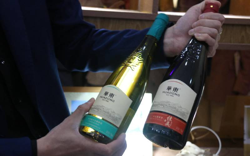 Some of the premium wines by Qingdao Huadong Winery Co. Ltd. The Company manufactures white wine, red wine, and other products. [Brian Ngugi, Standard]