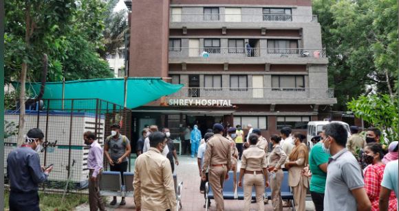 Police stopped angry relatives from entering the Shrey Hospital in Gujarat state’s largest city after the tragedy which, according to emergency services, was caused by a medical staff member’s personal protective equipment (PPE) catching alight.