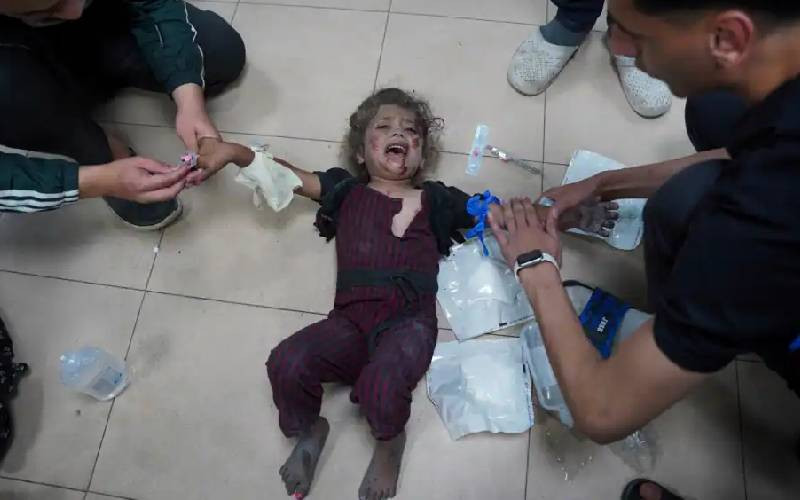 Palestinian medics treat a wounded baby at Al Aqsa Hospital in Deir al-Balah, Gaza Strip, May 11, 2024. [AP Photo]