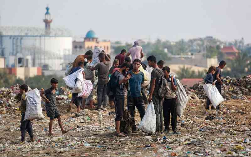 Youths sift through waste at a landfill in Khan Yunis in the southern Gaza Strip on October 15, 2024, amid the ongoing war between Israel and the Palestinian militant group Hamas in the besieged Palestinian territory. [AFP]