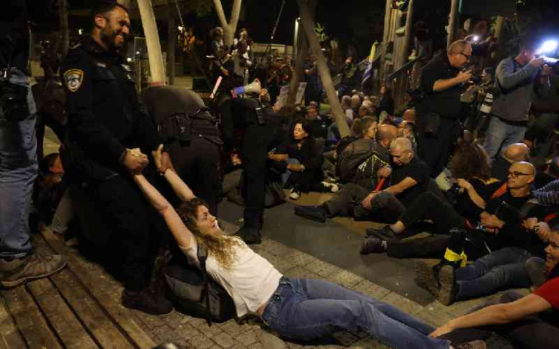 Israeli policemen remove anti-government protesters and supporters of Israelis held hostage in Gaza since the October 2023 attacks by Palestinian militants, who were holding a sit-in calling for their release near the prime minister's residence in Jerusalem on October 28, 2024. [AFP]