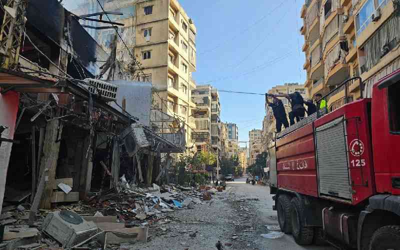 Firefighters douse fire at the site of an Israeli airstrike the previous night in Beirut's southern Hareik Hreik neighbourhood on November 22, 2024, amid the ongoing war between Israel and Hezbollah. [ AFP. ]