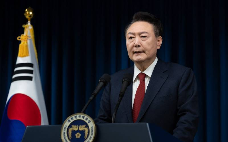 South Korea's President Yoon Suk Yeol delivering an address at the Presidential Office in Seoul. South Korea's embattled President Yoon Suk Yeol stopped short of resigning on December 7 over his declaration of martial law, with a vote to impeach him hours away and mass street protests planned in Seoul. [AFP]