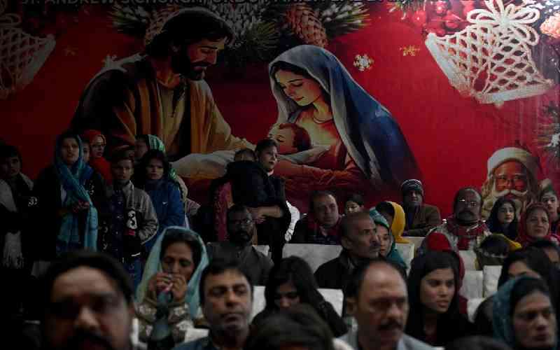 Christian devotees attend midnight Christmas Mass at St Andrew Church in Karachi on December 25, 2024. [AFP]