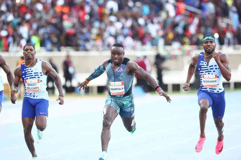 Africa's fastest man Ferdinand Omanyala powered to victory in men's 100m as the crowd that included President William Ruto and opposition leader Raila Odinga roared in jubilation at Kasarani Stadium on Saturday.